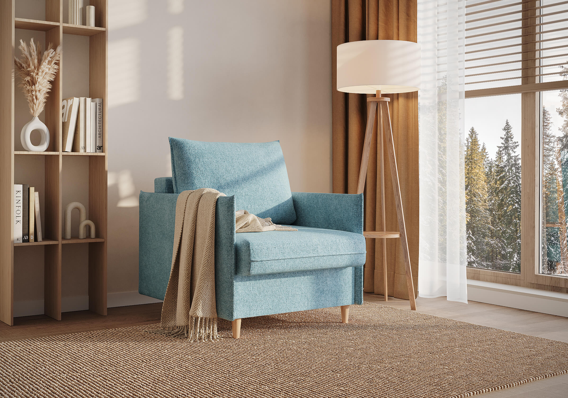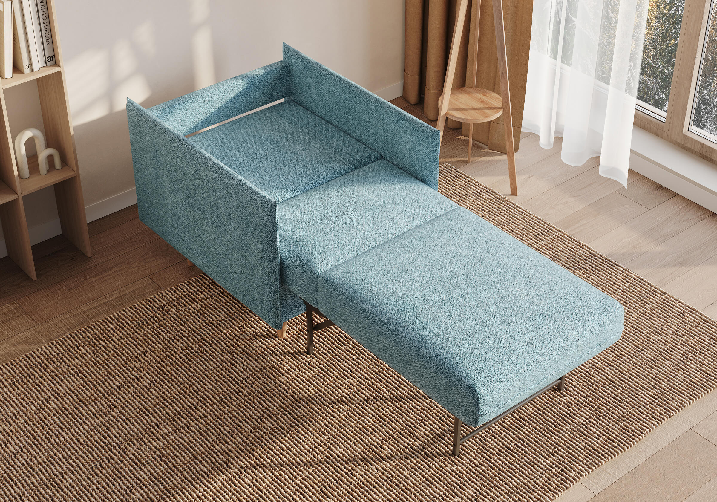 Идеальный выбор для тех, кто ценит эстетику и функциональность в равной степени. Его лаконичный дизайн гармонично впишется в любой современный интерьер — как в минимализм, так и в скандинавский стиль. Благодаря трёхсекционному механизму трансформации (МТД), кресло легко превращается в полноценное спальное место. Узкие подлокотники не занимают лишнего пространства, позволяя креслу легко вписаться даже в небольшие комнаты. Высокие опоры придают изделию лёгкость и изящество, облегчая уборку и позволяя роботу-пылесосу беспрепятственно двигаться под ним.